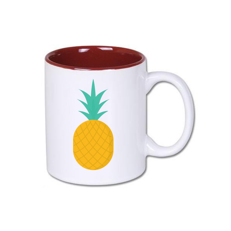 White mug, brown inside, coated with a special polyester for sublimation printout.