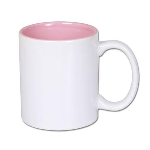 White mug, pink inside, coated with a special polyester for sublimation printout.