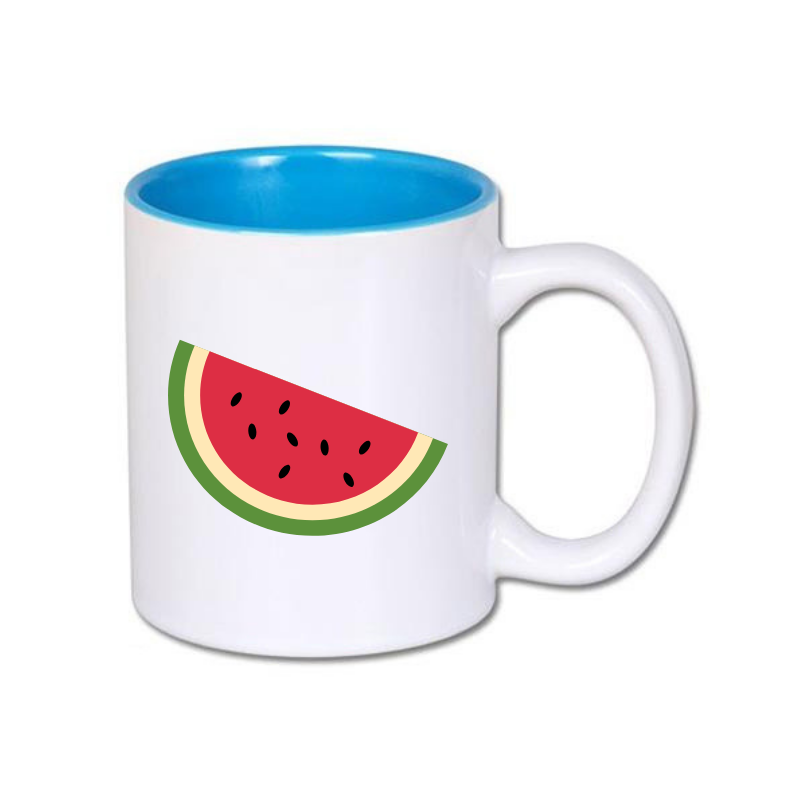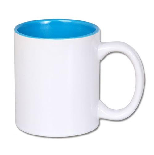 Sky-blue mug, beige inside, coated with a special polyester for sublimation printout.