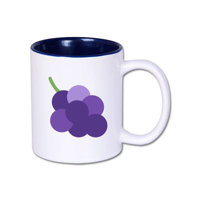 White mug, blue inside, coated with a special polyester for sublimation printout.