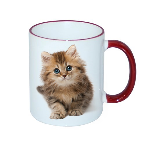 White mug with brown handle, coated with a special polyester for sublimation outprint and transfer laser printers. Mugs with colorful grip and edge are become more and more popular gadgets. Bicolor mugs are perfect to create interesting personalized projects.