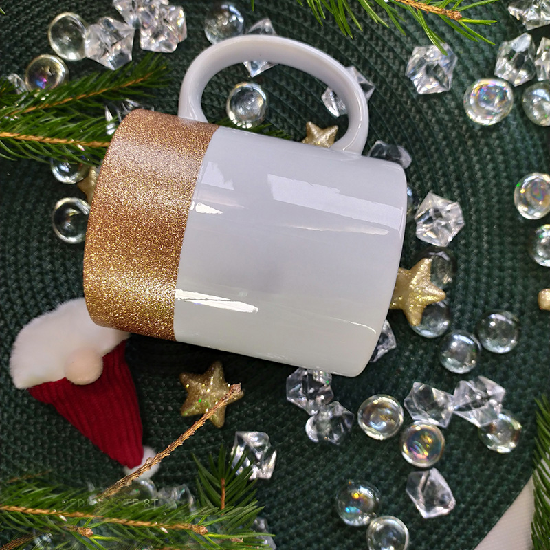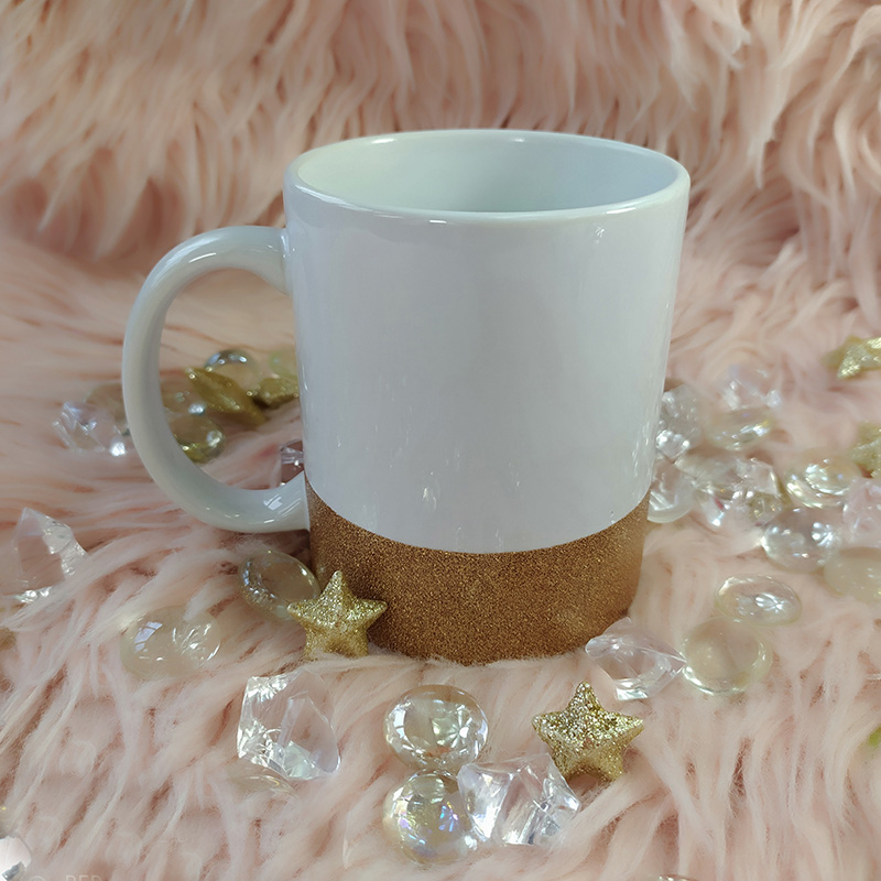 Special glitter on white mug draws attention - perfect for advertising and marketing campaigns. Sublimation mugs with glitter stripe can present company's logo and they can be an excellent advertising gadget. Shimmering coloured mug with graphics or funny sentences are sure to brighten everyone's day.