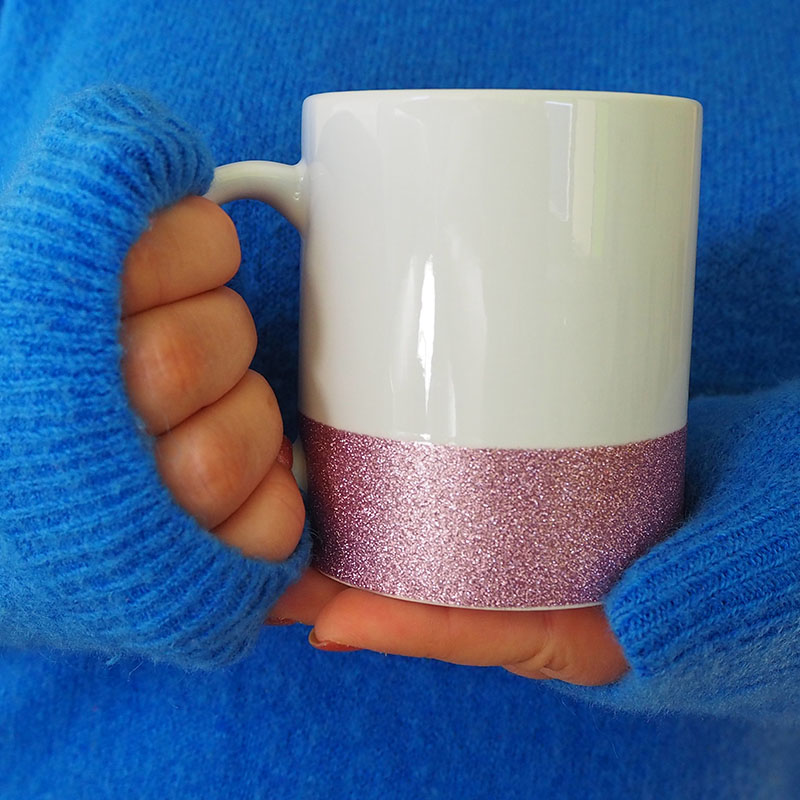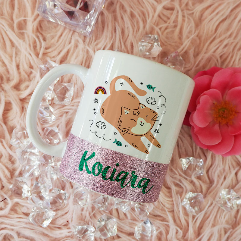 Special glitter on white mug draws attention - perfect for advertising and marketing campaigns. Sublimation mugs with glitter stripe can present company's logo and they can be an excellent advertising gadget. Shimmering coloured mug with graphics or funny sentences are sure to brighten everyone's day.