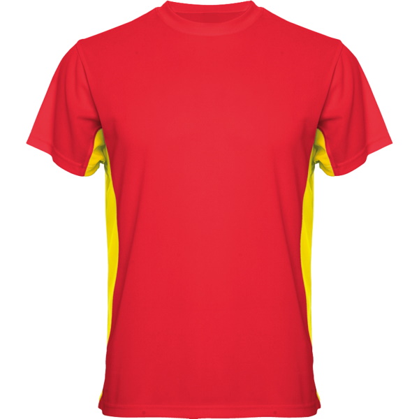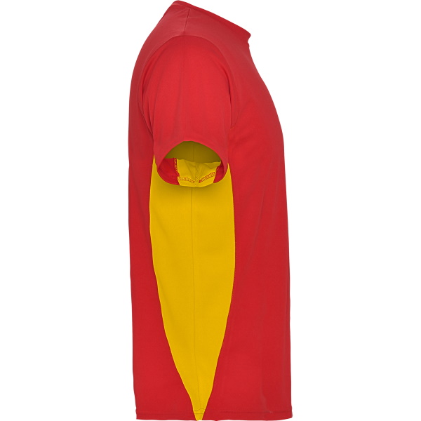 - the sports jersey has short sleeves, a round, neckline and covered seams around the neck