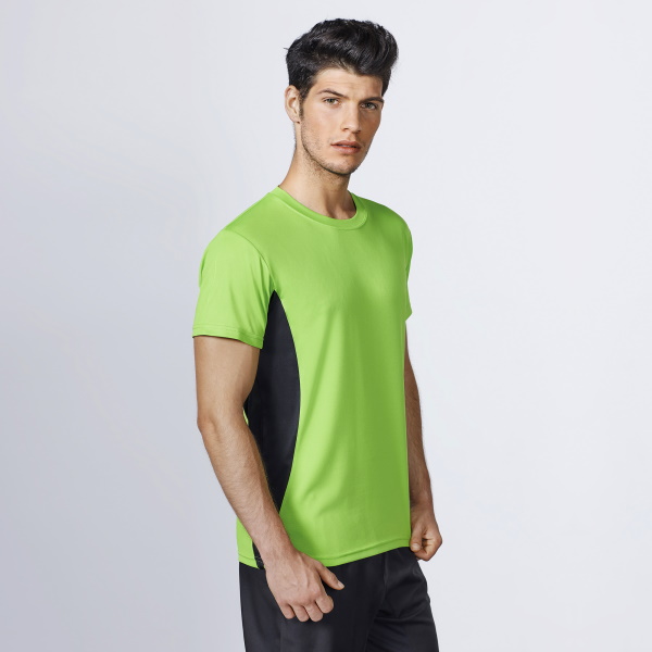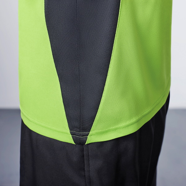 - the sports jersey has short sleeves, a round, neckline and covered seams around the neck