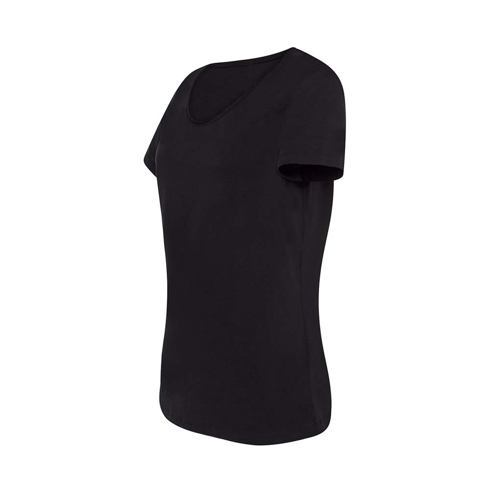 - shirt for printing has trimmed sleeves and wide, round neckline without trim on edge
