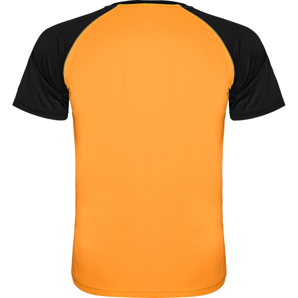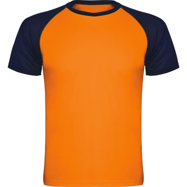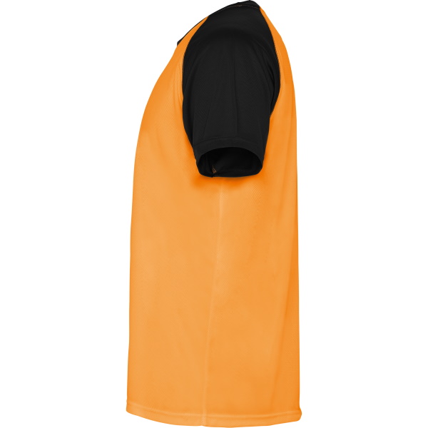 - the sports jersey has short, raglan sleeves in a contrasting color and a round, colored neckline with reinforced covered seams