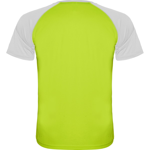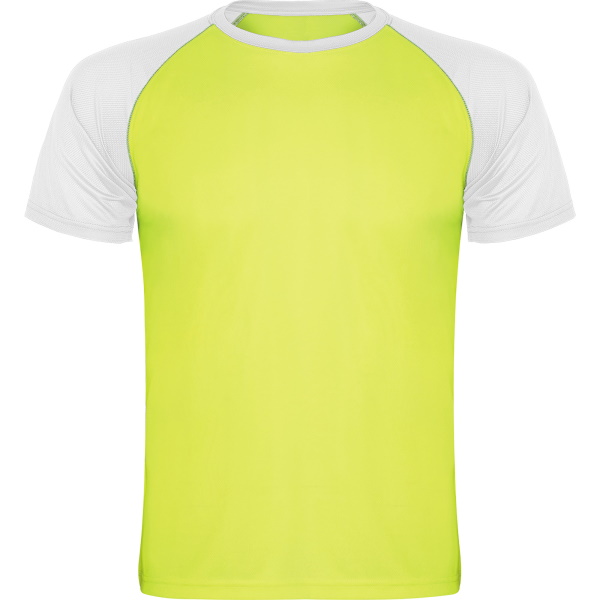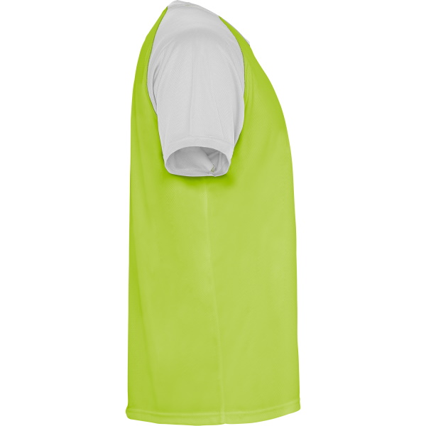 - the sports jersey has short, raglan sleeves in a contrasting color and a round, colored neckline with reinforced covered seams