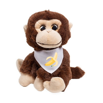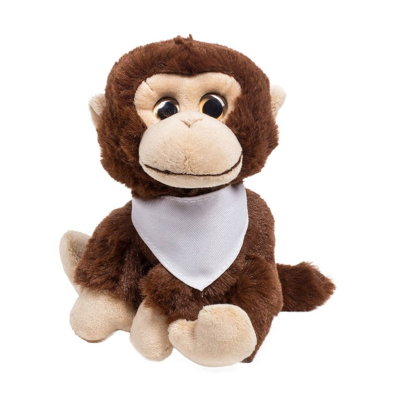 Mascot - a plush monkey with a white scarf for sublimation, height: 14 cm, dimensions of the scarf: 5 x 2 cm.