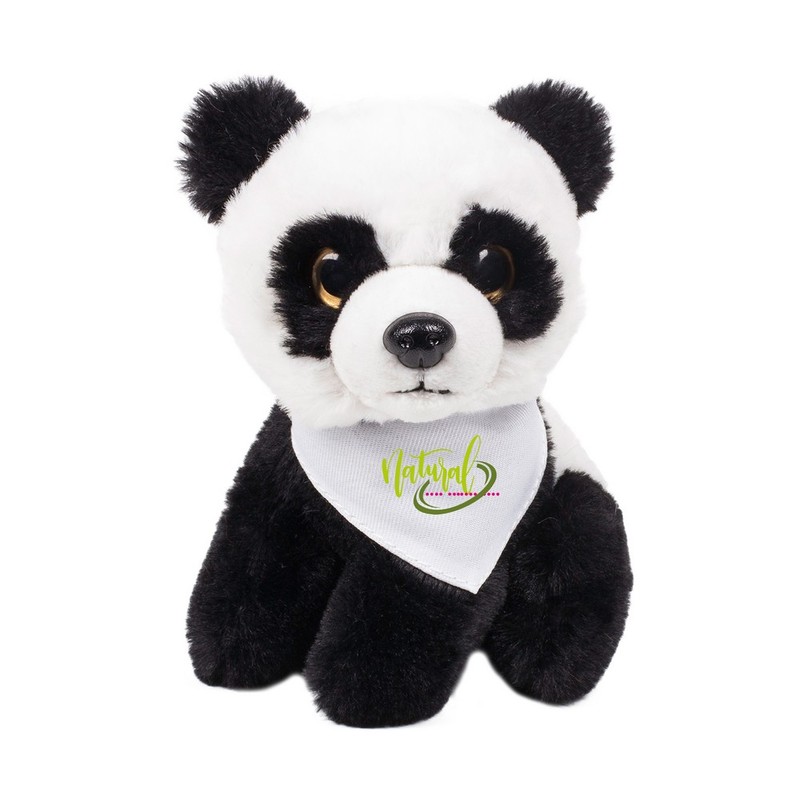 Mascot - a plush panda with a white scarf for sublimationhas a height of 14 cm, dimensions of the scarf: 5 x 2 cm.