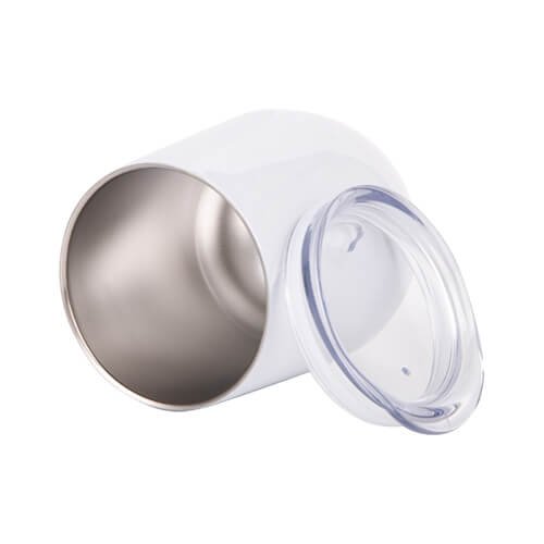 • Steel thermal mug with a transparent lid containing a drinking hole
