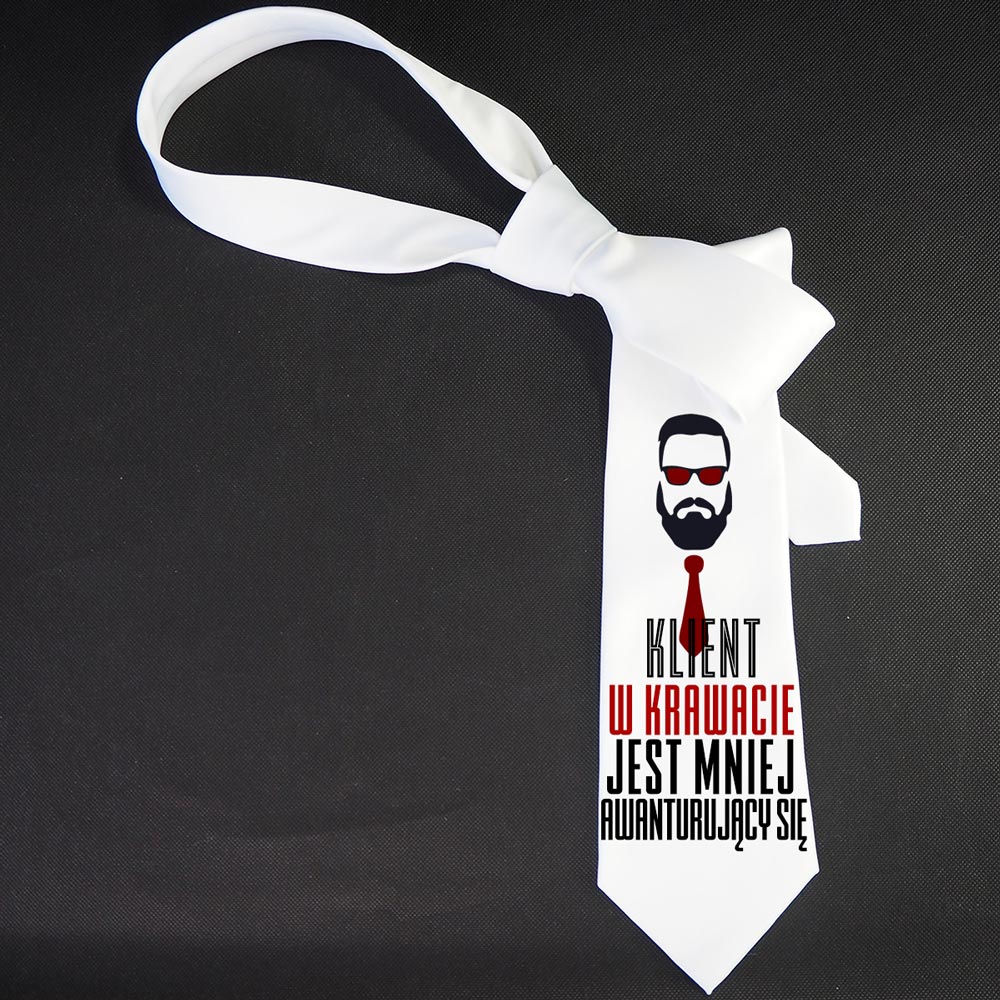 White, satin necktie dedicated to printing with the dye-sublimation method.