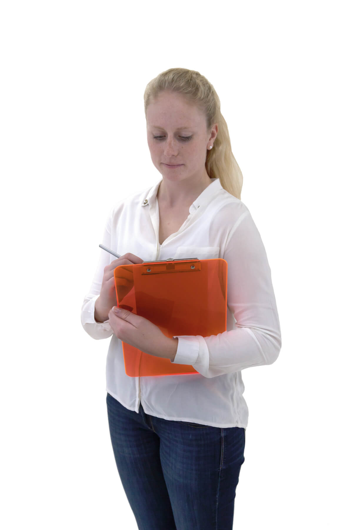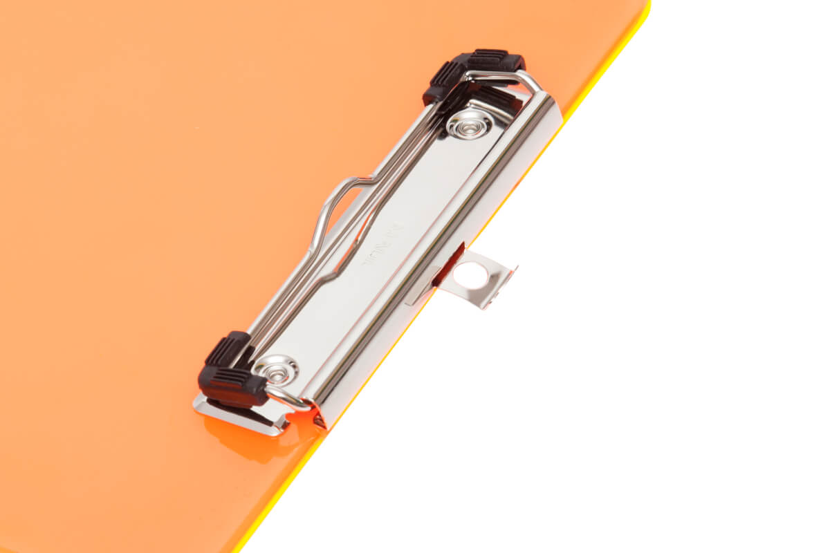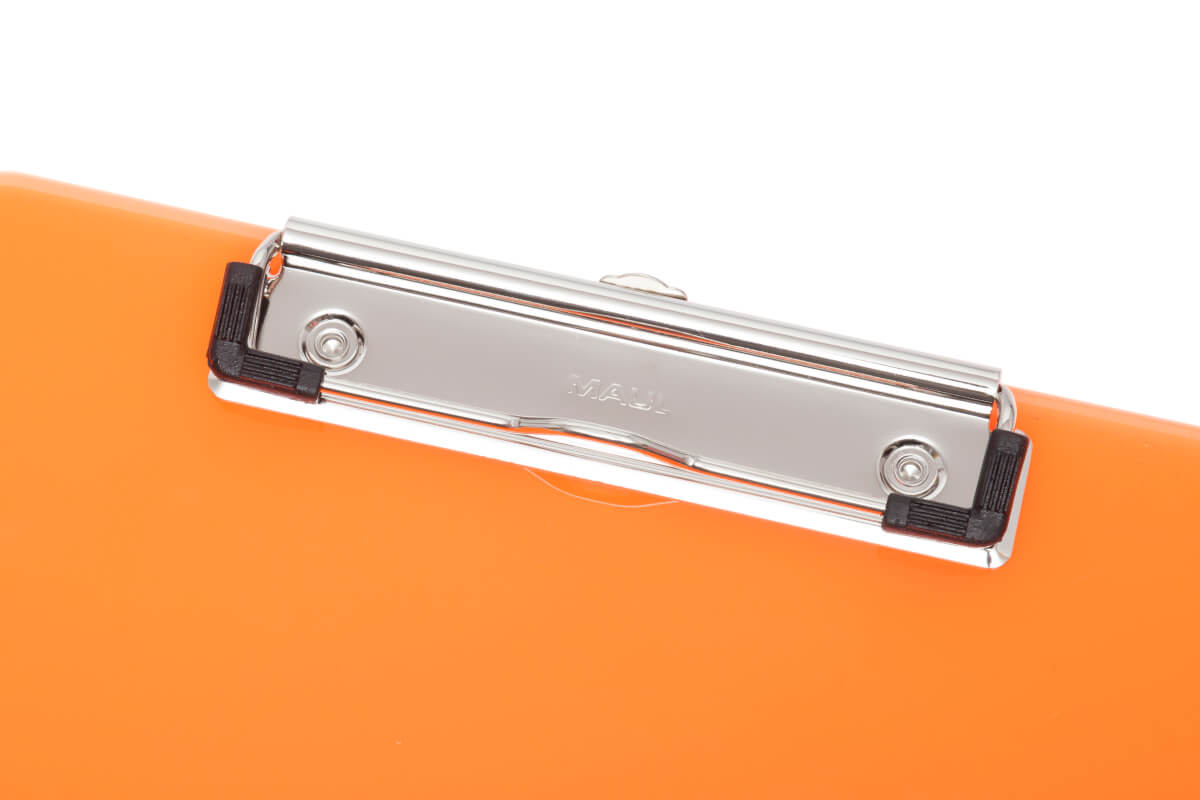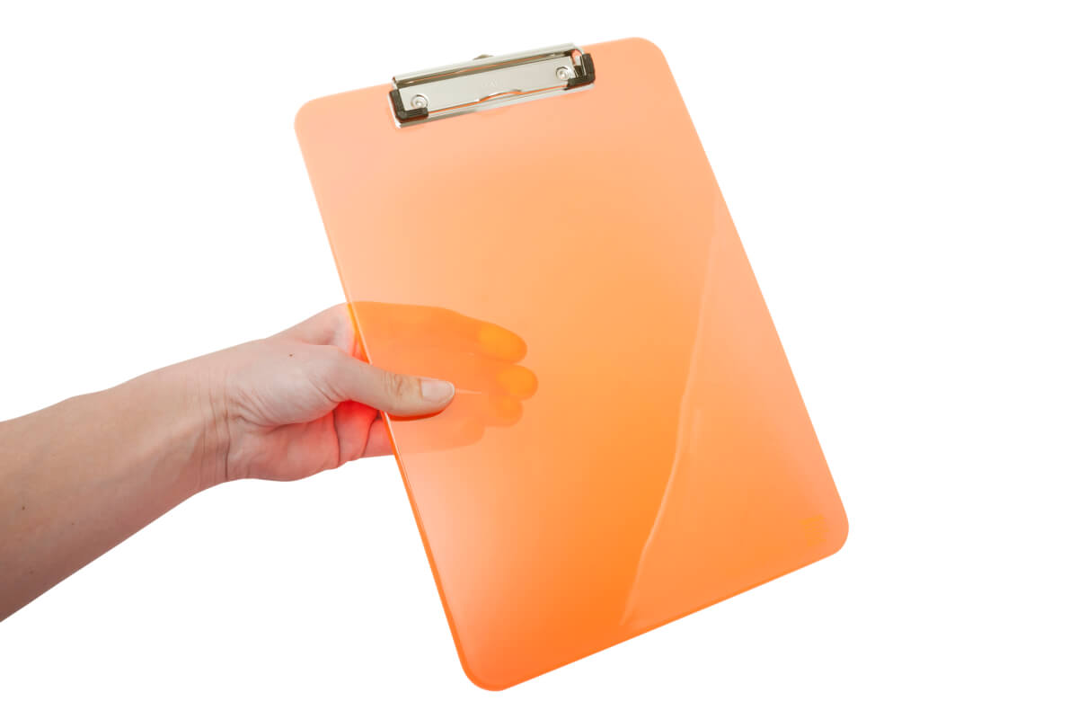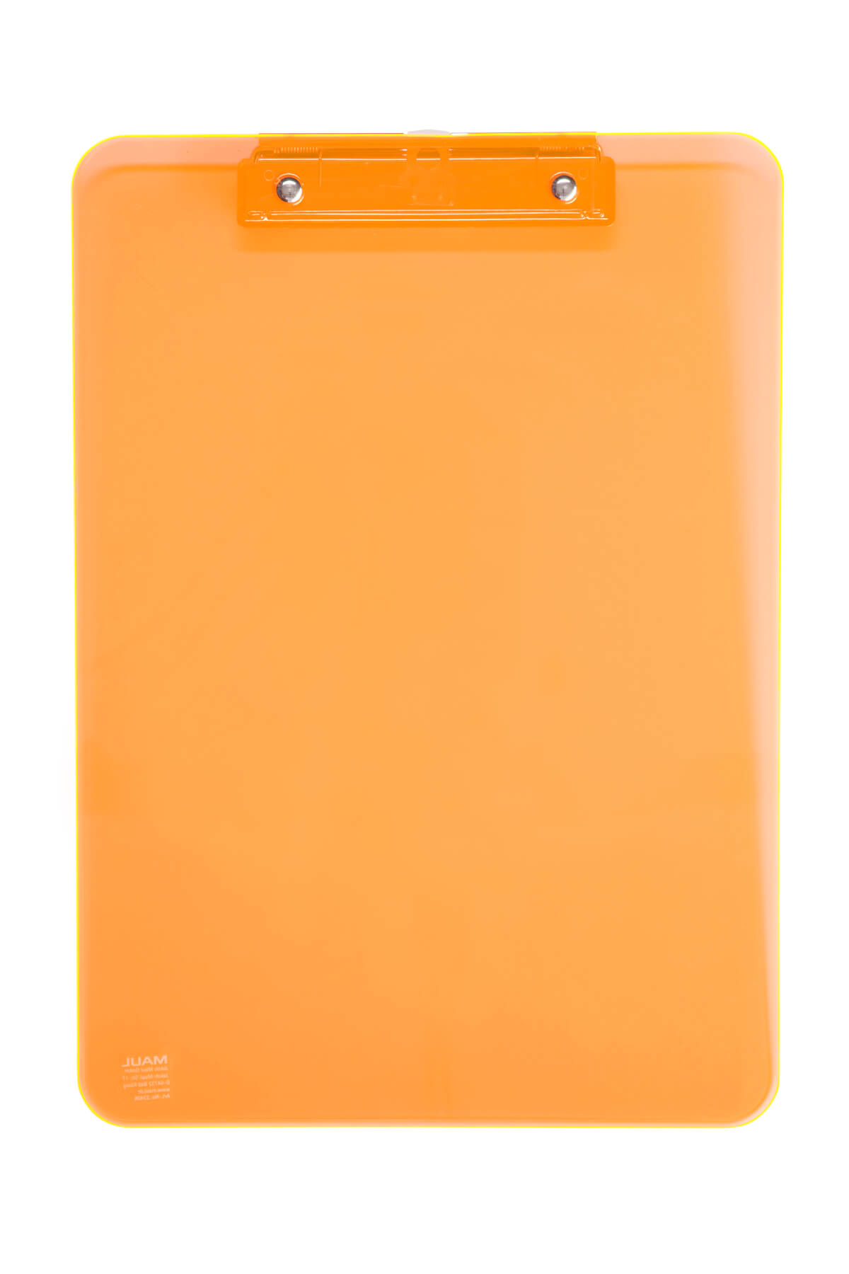 Clipboard from MAULneon provides a stylish, functional way to write without the use of a desk. Flat clip makes this durable, transparent plastic clipboard space-efficient and easy to use. Bright edges make it easy to see them in a variety of conditions. Clipboard includes a tab for hanging.