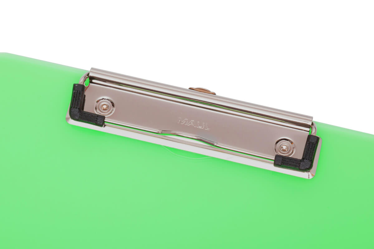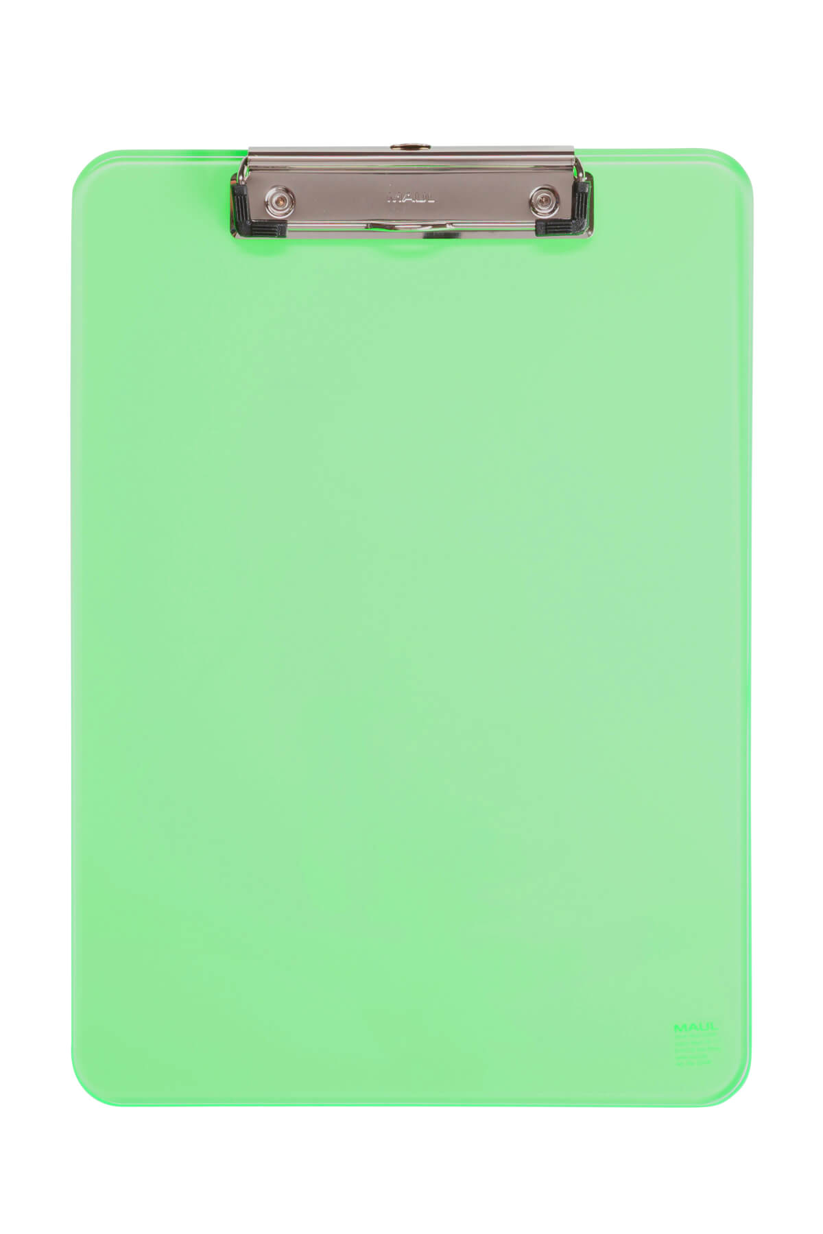 Clipboard from MAULneon provides a stylish, functional way to write without the use of a desk. Flat clip makes this durable, transparent plastic clipboard space-efficient and easy to use. Bright edges make it easy to see them in a variety of conditions.