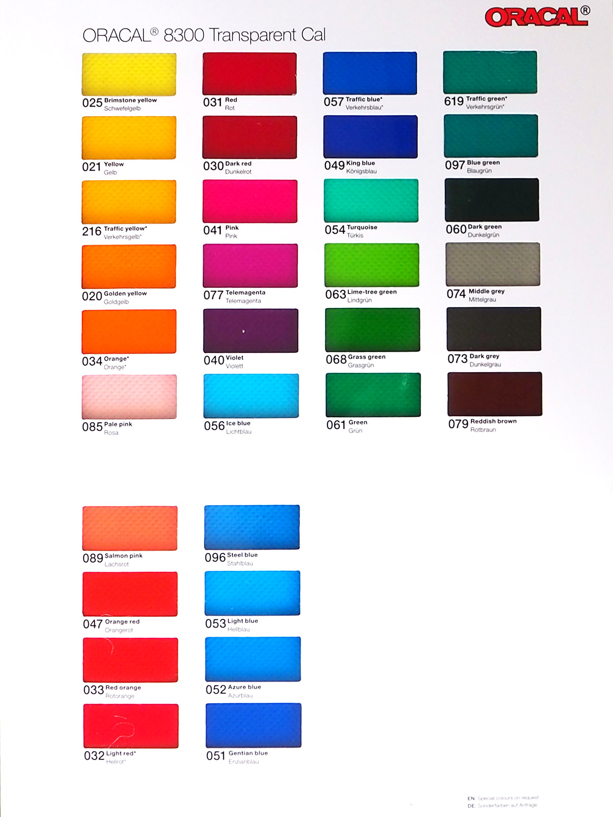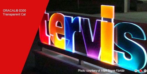 Special transparent coloured PVC film with UV-stabilisers. This film is especially designed for permanent markings for internally illuminated signs and window graphics. It meets the requirements of the computerised sign-marking industry. Both dry and wet applications are possible, and the adhesive does not change colour.