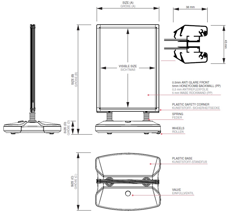 • Water or sand filled base