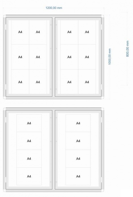 Two-door outdoor information display cabinet Type 1 Wymiary 80 x 120 cm Ilość kartek A4 x 8 Głębokość całkowita 3 cm Stock code
