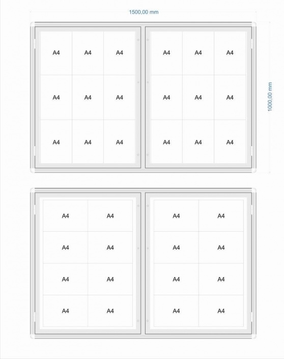 Two-door outdoor information display cabinet Type 1 Wymiary 103 x 120 cm Ilość kartek A4 x 12 Głębokość całkowita 3 cm Stock code