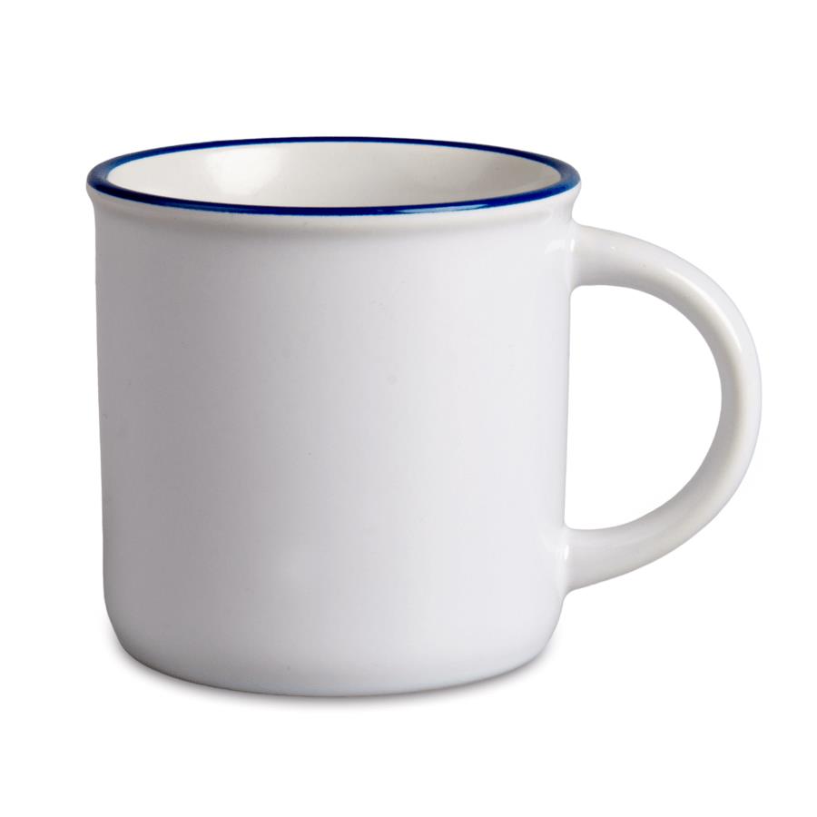 Vintage mug for sublimation with a blue edge.