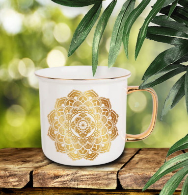 Ceramic mug for sublimation in a retro style with a gold handle and gold rim