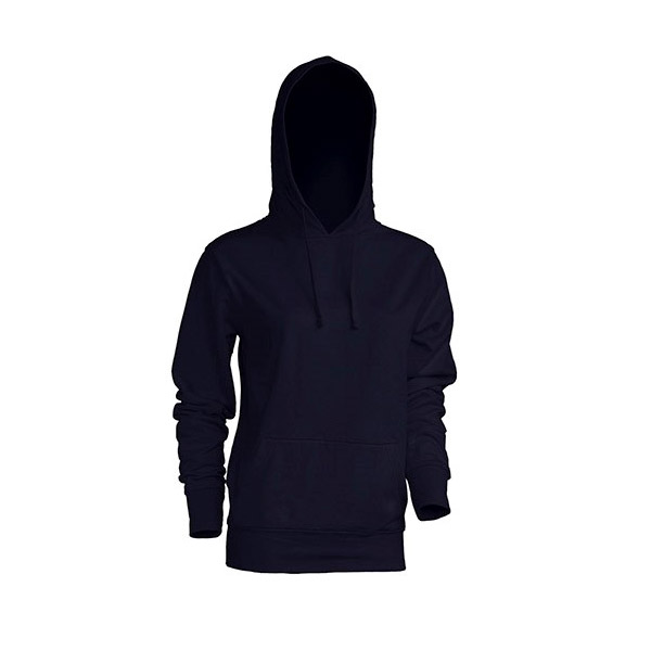 - Women's kangaroo sweatshirt has rib with lycra in cuffs and waistband.